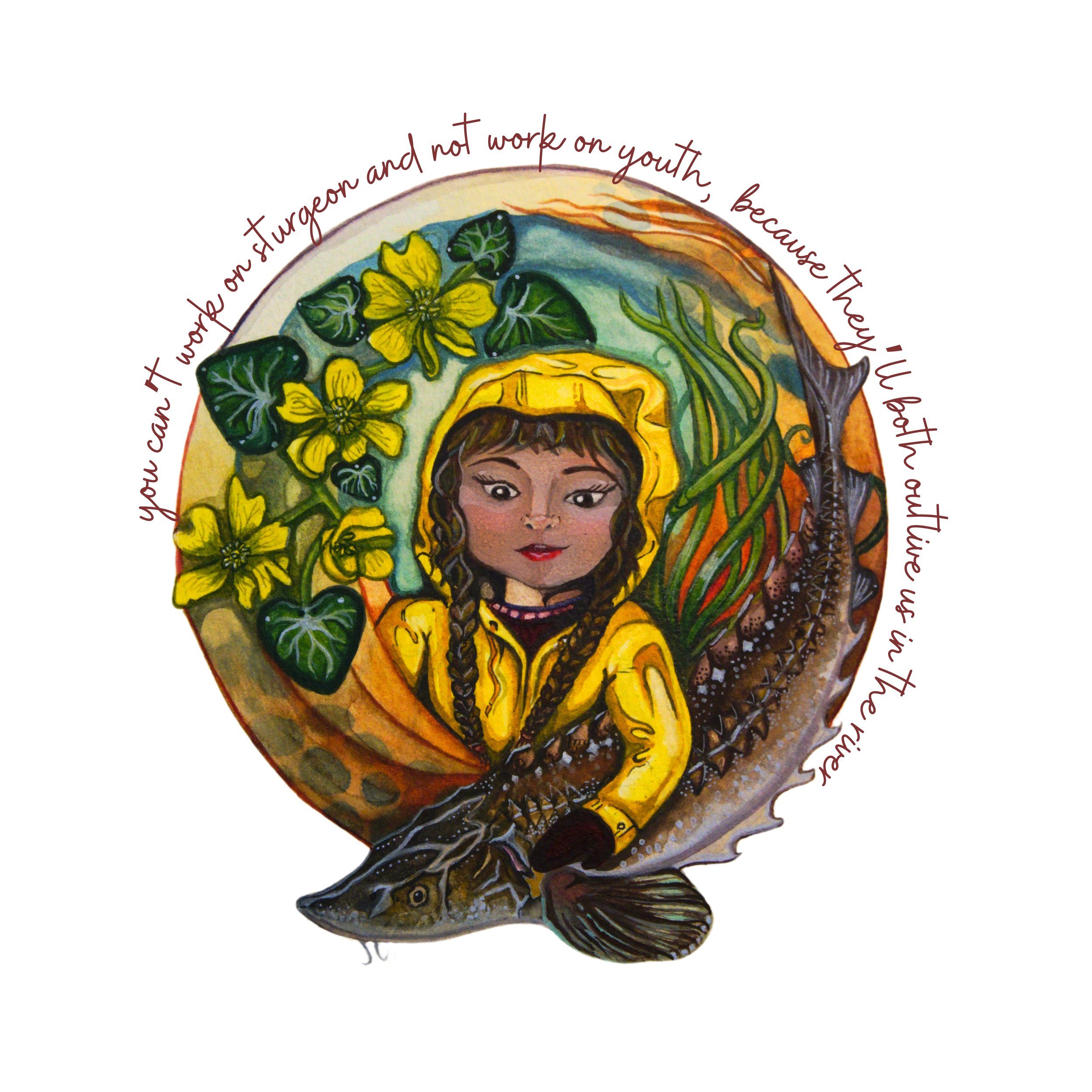 you can’t work on sturgeon and not work on youth, because they’ll both outlive us in the river: All copyright belongs to artist Nicole Jung — please do not copy/download this image, Mikwec!